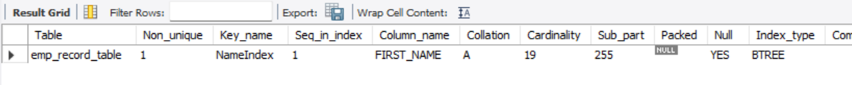 Create Index NameIndex On emp_record_table(First_Name(255));