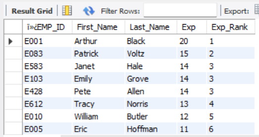 dense_rank()Over(order by Exp Desc) As Exp_Rank