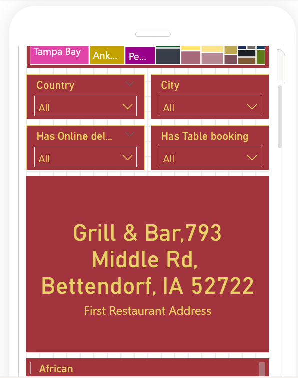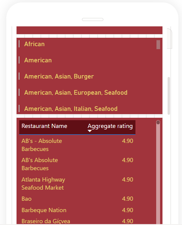 • Filter and view information on the restaurants based on: