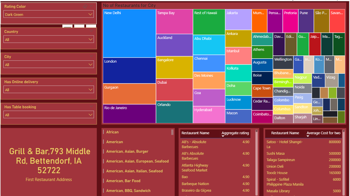 • Discover the restaurants with the lowest average costs
